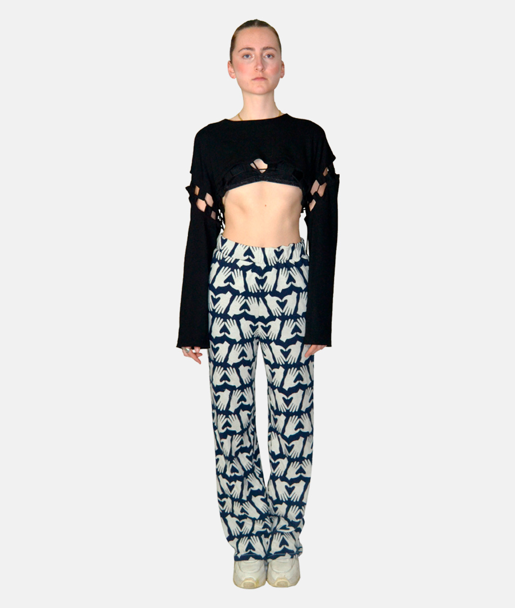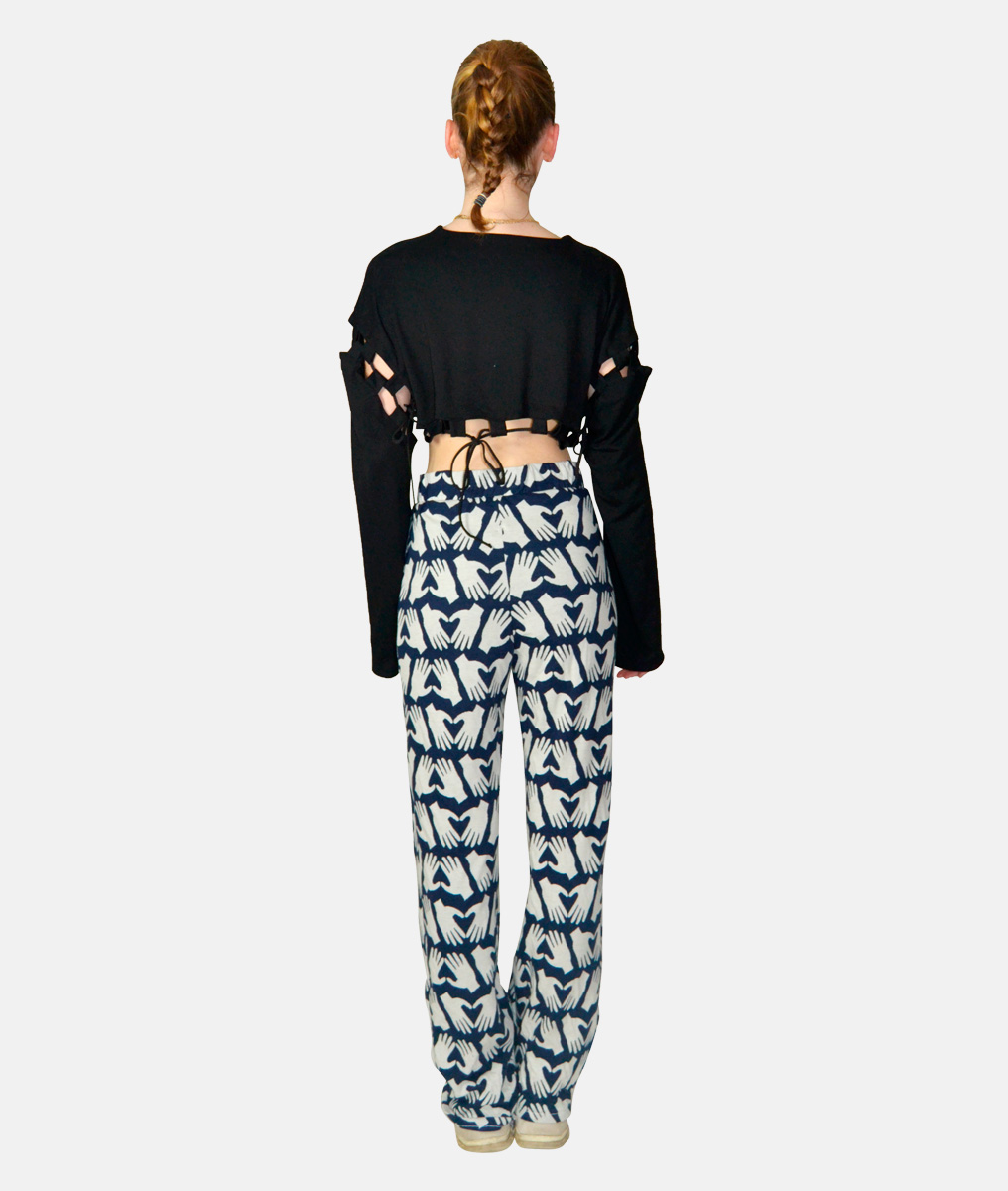 Confectionné en jersey jacquard double face, le pantalon Paolo reprend l’imprimé graphique bicolore bleu et blanc coordonné à la chemise Pina. Sa coupe confort, légèrement évasée, est structurée par un large élastique à la taille. Le jersey accompagne les mouvements sans plisser, offrant souplesse et aisance au porté.